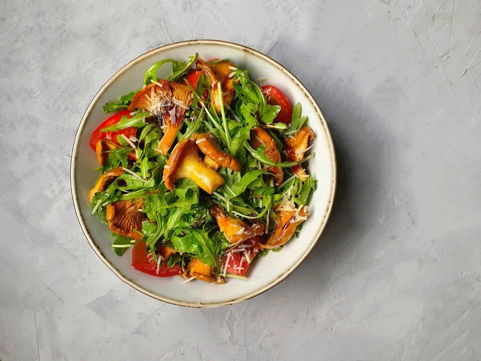 Пенне и тёплый салат с лисичками просто топ😻😻😻 Открытка отдельно порадовала)