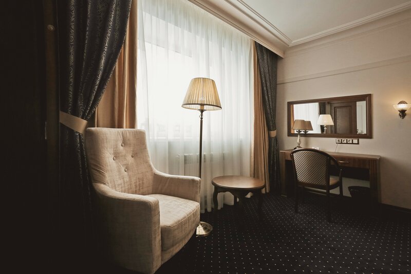Улучшенный однокомнатный номер с двумя односпальными или широкой кроватями и рабочей зоной. По запросу возможно предоставление дополнительного места (пуф-кровать).