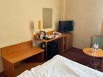 Приезжали с внучкой на вокальный конкурс, гостиница красивая, удобно расположена. Номер был стандарт, с видом на двор и дом. В номере 2 односпальные кровати, телевизор, шкаф. В номере чисто, каждый день менялись полотенца, докладывали пакетики чая, кофе. По категории номера должны были быть халаты, но их не оказалось,после звонка на ресепшн вопрос решили, принесли халаты. Шкаф не очень удобный, больше для блуз и рубашек, платье во всю длину не помешается. Завтраки отличные, на любой вкус, разнообразные. Не далеко метро, что очень удобно. Рядом есть кафе, столовые. Рекомендую.