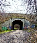 Нигде не нашла информации о назначении данного тоннеля, ему чуть больше 100 лет. Выглядит хорошо, если ещё бы и не писульки. Сверху проходит действующая железка