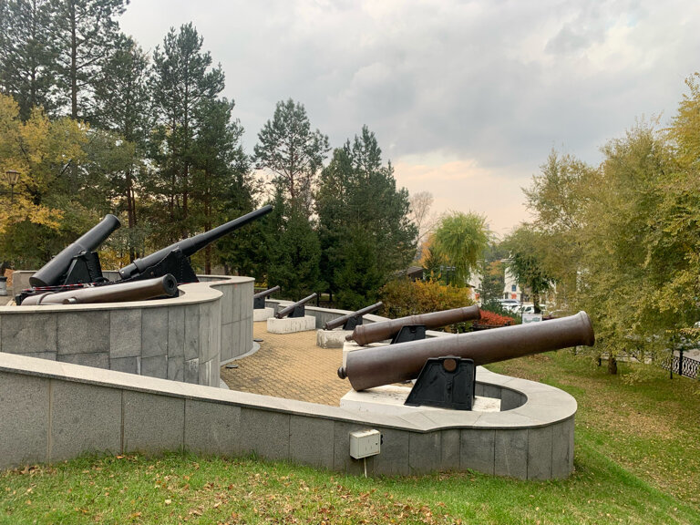 небольшая батарея старинных орудий, стоявших на обороне Хабаровска в прошлом.