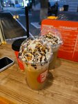 Классная кофейня, уютная, дружелюбная атмосфера, вежливые сотрудники. Цены приемлемые, продукты качественные, большой выбор кофе, чая, лимонадов. Очень порадовали напитки "Баунти" и "Сникерс", очень вкусно, внешний вид и подача на высоте.
