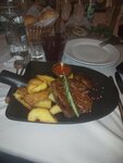 I order some delicious dishes. Steak, potatoes, salad, sausages, etc. Everything, I repeat, is very tasty. The service (Maxim worked with us) is very polite, responds to requests quickly and clearly, gave his recommendations understanding (the menu is extensive). While I was sitting, it was cozy all the time, the atmosphere was gorgeous, just like the whole theme of this institution. Live music after 21.00 on Saturday and Friday. There are several halls with slightly different furnishings. I really liked it. Respect to Maxim, a gorgeous waiter.