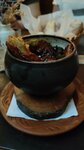 Date of visit 04/17/2025 When you enter the establishment, when you go downstairs, it gets hot. Maybe it's great on cold days, but not warm ones. The staff is friendly and helpful. The menu range is interesting. The chicken was bland, the mashed potatoes were normal. A colleague took the lamb pancakes in a pot and offered them in half for me to try. The waiter convinced me that it was separate - mutton separately, draniki separately. In fact, draniki are distributed along the walls of the pot, which stick together and when you want to take them, some of the draniki remains on the walls of the pot. And on top of the pancakes is mutton in sauce))) And it all turns into porridge😅 The draniki, which were on top and without sauce, are delicious