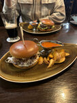 Заведение приятное глазу, обслуживание хорошее, предлагали пиво на пробу, это хороший плюс! Бургеры принесли чуууть теплые и то катлета, из своего опыта по бургерам скажу что данные бургеры этих денег не стоят. Возможно их специализация стейки, как они себя и позиционируют, не пробовал. За то бургеры подают сразу с соусом и картофелем Айдахо )