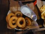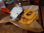 Вывод для тех, кому лень читать. Бар с обширной пивной картой и разнообразным меню - в котором раздражители не дают поставить пять. 4 балла из 5. За год был четыре раза, в итоге набралось на обзор, хотя первоначально и не планировал. В основном находились места в первом зале, только однажды был в третьем - о котором и не знал - за санузлами есть ещё зал, который с окнами во двор, его не советую потому, что персонал его редко навещает. Пивная карта - большая и удобная, сорта сгруппированы по понятным даже далёкому от пива человеку категориям. Меню для паба, возможно, даже избыточное. Листаешь-листаешь, потом красивый разворот со стейками, наверно, на этом всё? Нет, потом ещё горячие... Сырные стрипсы 550₽ - стандарт, соус с ягодами не очень удобный для макания - ягоды к палочке никак не прилипают, а жидкая фракция довольно жидкая. В итоге, если соус не есть ложкой вприкуску, получается довольно мало его на палочках. Раздражитель №1 Луковые кольца (450₽) и кольца кальмара (490₽) - аккуратно сделанные, панировка плотно облегает продукт. Рыбные палочки 490₽ - как и кольца кальмара, как и фиш энд чипс (тут важно не перепутать, в меню блюд к пиву есть и то, и другое, несложно перепутать - фиш энд чипс недалеко ушли от "рыбные палочки с картошкой") подают с соусом тартар, который как будто специально придумывали, как сделать неудобным. Это кубики огурца, как будто их нарезали для винегрета, причём особо брутального и минимум "смазки" между ними. Макнуть в этот соус палочку решительно невозможно. Подцепить порцию соуса тоже не вариант - палочка не настолько жёсткая, ломается. Издевательство, а не соус. Раздражитель №2 Набор закусок к пиву за 1850₽ - не планировали заказывать целый набор, попросили порцию крыльев, и оказалось, что куриных крыльев нет, но можно взять набор, в котором они есть. Я совершенно перестаю понимать логику этого мира. Ну, раз уж набор, то, думаю, надо рёбра попробовать, раз целую порцию не брал ни разу. Не знаю, такие же рёбра в наборе, как в горячем, но они, увы, ужасны - копчёный дух от них хороший, а в остальном это жёсткое мясо, которое приходится буквально обгрызать с кости, потому что оно к ней прилипло намертво. Раздражитель №3 Салат с копчёной свининой 640₽. Копчёный дух мяса солирует, но в аромате, не во вкусе. Много зелени, общий вкус получился свеже-салатный, вот только бальзамиком полили скорее зря, и без него заправки хватало, а он все же довольно сильно тянет одеяло на себя в плане вкуса. Солянка с мраморной говядиной 660₽ - на вид небольшая порция, но суп богатый, бульон наваристый, разных видом мяса много в каждой ложке. Меню обещает каперсы - не попались. Каперсов ведь в порцию солянку кладут всего ничего, поэтому они обычно сверху, чтобы хоть как-то заметны. Тут не заметил с первого взгляда и потом как-то не попались. Маслины нарезанные есть, оливок нет. Хорошая, но чуть упрощённая против собственных обещаний солянка. Раздражитель №3.5 Бургер 890₽ - котлета бессовестно завеллданена, совершенно серая, поэтому, хотя и толстая, а безрадостная. Даже торчащие из бургера хвосты айсберга не так расстраивают (хотя тоже расстраивают). Раздражитель №4 Бефстроганов 990₽. Барный, то есть неаккуратный, пюре шлёп, мясо в соусе шлёп, но тут и не надо ждать ресторанных выкладок. Порция увесистая, мясо легко жуется, соус плотный. Помидоры черри точно лишние, а в остально
