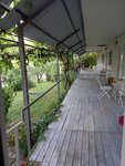 Вежливая, гостепреимная хозяйка. Очень чисто. Постельное белье меняют 1 раз в 5 дней. В номере достаточно розеток, есть зеркало, комод, шкаф для одежды с вешалками, холодильник, телевизор, кондиционео, тумбочка. Есть тазик, чтобы простирается вещи. Фумигатор от комаров был выдан. Предоставляются полотенца. Есть кухня для самостоятельного приготовления пищи с большим холодильником, плитой, микроволновкой, посудой. Такого радушия не встречали нигде. Единственное но - подъем в горку. До моря 15 минут. С террасы видно море. Шум с трассы не доносится.