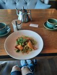 Сначала очень долго ждали официанта, минут через 15 сделали заказ, ещё минут через 15 принесли чай и кофе, пока ждали закуски выпили чай и кофе, ещё минут через 15 принесли не закуски, а холодный суп с морепродуктами, к которому «шёл» рис, который, видимо, стоял на столе с самого утра, потому что сверху был настолько завертренным и твёрдым, что невозможно было прожевать. Ещё через 15 минут подали закуски тар-тар, который был совершенно безвкусный, без соли и перца, ещё через 15 минут подали салаты и десерт. Официант сказала, что подают по мере готовности 😟 хотя, когда заказывали, нам не сказали, что суп будет раньше закусок, а салат придётся есть с десертом и без чая. Да и ещё, во время трапезы официант нам принесла чьё-то чужое блюдо, минут через 10, видимо осознав свою ошибку, забрала. Отдельно хочу отметить ужасный салат с баклажанами, ну если не умеете его готовить - ну не беритесь! У вас какое-то месево вместо хрустящих баклажан. В конце ещё и пытались обмануть со счётом и вместо 300 посчитали 600 рублей за 1 браслет, хотя изначально, на всякий случай, я уточнила стоимость браслета, после некоторого ожидания нам вернули разницу, если бы я не посмотрела на счёт, который к слову официантка оставлять вообще не хотела, то разумеется нам разницу бы никто и не вернул. Одним словом, вообще не рекомендую!