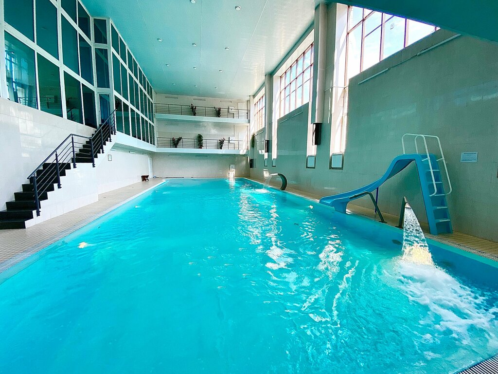 Бассейн для взрослых и детей. Длина 22 метра. Удобная глубина от 1,2м до 2,2м . Есть свободное плавание, детские группы, индивидуальные занятия с тренерами, а также аквааэробика и аквафитнес. Тел. для записи: 8(81370)22-552 и 8-981-199-58-58