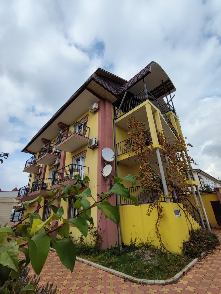 Один из эконом вариантов ночлега неподалеку от Олимпийских объектов и СочиПарка,но пешком до них идти далековато,а автобусы тоже не совсем прям до них довозят.Рядом столовая и магазин-это плюс.Сам гостевой дом произвел впечатление неухоженности и неопрятности.Отдельно есть кухня-столовая где можно приготовить еду,но мне было как то брезгливо это делать. Бассейн в дни нашего заезда находился на ремонте(за это тоже балл снизила).Номер нам достался один из лучших на втором этаже.В нем одна двуспальная кровать и две односпальных установлено.Постельное белье видавшее множество стирок и сушек на солнце.Полотонеца чистые и белоснежные.В номере была произведена накануне влажная уборка администратором.Есть телевизор, минихолодильник,кондиционер и шкаф.Кондиционер установлен так что возлух попадает на одну из кроватей,поэтому включали только когда выхолили тз номера,чтоб охладить помещение.Комарики тоже были ночью и муху одну гоняли.Лифта нет(может кому принципиально).Двери скрипят входные и туалетные.Тишину пока спят соблюдать сложно.В общем коридоре есть столик с чайником, микроволновкой и креслом,где можно посидеть пока греется перекус.Также есть балкон,где стоит пару стульев и напольная сушила для белья.Гостевой дом предоставляет услугу стирка белья-150₽.Парковка для машин у магазина Колобок.Есть котик во фраке в Олимпии,который навещает проживающих и детки его мои гладили с удовольствием.Администратор тактичная и вежливая.Но гостевой дом конечно требует ремонта косметического, лоска не хватает...