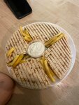 вечно чего-то нет: как ни придем, у них нет булочек на гиро, хотя это ходовой товар, мы за ним только и приходим. на кассе стоит очень неприятная дама. после такого обслуживания и диалога вообще возвращаться не хочется. взяли скепасти. картошки чуть пожалели, но терпимо.