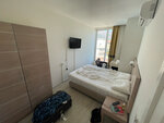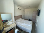 Hello everyone. We arrived as a couple at this hotel and were horrified. I always rested at 5 and 4, I expected modest simplicity from the three, but definitely not like this. I must say right away, it looks better in the photo, the reviews do not show everything. Start: 1. The room. Leaves much to be desired, they did not pay anything extra, they got a room of a maximum of 10 sq. m., the refrigerator is scanty and weak, it did not cool much, but it warmed itself. The socket was sticking out of the wall, the TV wasn't working (but we didn't care), the air conditioner was working like a fan (!!), the toilet door didn't open until the end and stuck into the sink (so to wash your hands, you first open to the sink, go through, close the door and then go to the sink). The furniture is very shabby, early 00s. We were pleased with the floor-to-ceiling window, we were very lucky that in the absence of a balcony there was such a window, the view of the mountains saved the situation. Noise insulation is zero, the cracks in the front door make you wake up with other vacationers, sometimes it seems that they come to your room. Cleaning every 3 days, the linen was replaced 1 time, the new one was with pellets :(the sink was not washed, the floor was wiped, towels were changed. 2. Food. Very simple, meat is extremely rare, mostly soy, fish was 1 time, some bones, did not eat. The food is mainly fruit and vegetable. There were always watermelon and melon from fruits, not the sweetest, a couple of times grapefruit - everything from fruits. We ate salads mostly. And then there were poorly washed leaves. Other vacationers who arrived earlier said that there were apples once, but they were all unwashed and dirty. 3. The sea. The sea is very close, it's super, but everything is spoiled by the fact that, as it turned out, the beach and the hotel are different organizations)) it is correctly written that the beach is scanty and not designed for such a number of vacationers, there was a real struggle for sun beds: a) people got up on the alarm clock at 5-6 in the morning to take a sunbed, b) people went wild and began to throw other people's things off the sun beds!! Someone was quarreling, someone was leaving in silence, we also faced this, turned to the head of the beach, and he was just a disgusting man, arrogant. I stood waiting for the coffee to be brewed, asked him to speed up, he said he wouldn't even help. Why?) because the hotel manager Osman is not his boss. And Osman can't even tell him off. So on the beach here, everyone is on their own, unfortunately. This is the most terrible thing, because the rest is on the beach, and there are problems with the beach. And a little more about the head of the beach: for money, he throws other people's things off the sunbeds and drags them to another place to hide his tracks. And then people come back from the sea and see their things on the ground. They saw it with their own eyes. And there is no trial for these crimes. 4. Service. Terrible. The guys themselves are adequate, the bartenders even liked them, nice people, but of course there was also a limping individual with an eternally dissatisfied face. Osman is terrible, he did not want to solve problems with the air conditioner, if you speak kindly, he does nothing, creates a kind of solution to the problem, if you directly demand, he turns to rudeness and shouting, which is simply outrageous. This is the first time I've encountered such an attitude. Shocked. The staff at McDonald's is even more polite. Moreover, we have a room with certain standards, we have the right to a working air conditioner. It's very unpleasant. 5. The story of the air conditioner. I didn't work on the first day, then after two requests I still got it working (I think they turn them off in order to save electricity), I worked all week, they turned it off again on the last night. After three requests and a final scolding, we were finally moved to an adjacent room with air conditioning. Thank god! However, it smelled damp, and the electricity was turned off 2 times in the evening :) 6. Problems of other vacationers. We talked to people and were told such problems: insects in the room near the kitchen, lack of hot water, power outages. In general, Kemer itself is great, but the hotel is just trash. Pay extra and go to a normal place. I don't really like conflicts at all, but this place just creates problematic situations with all its might. This is the first time. I hope you won't come across a window-to-window number :) or on the ground floor inside the building, where there is no light at all.