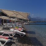 The hotel is located in the center of Kemer and on the 1st line - this is where the main advantages end!! The beach is very small, the sunbeds are pressed against each other, dirty, the aisles in front of the rows are scanty. I also want to note with what humiliation they serve in the bar, even 40 ml of gin, they divide into 2 people🙈and still grin at the same time!!! The manager Osman is arrogant, rude, behaves as if we came for free and bored him🤷♀️ Very good impressions were left by the representative of the leather and fur store- Islam!! Friendly, attentive, helped to solve any problems that arose!!