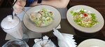 Были в данном заведении, что сразу бросилось в глаза это была сервировка стула. Всё было на своём месте тарелка на против стола для блюд, вилка по левую руку, по правую нож, бокал для вина. В заведении играет музыка, официантов было 3-ое, подача блюд была средней по времени. Если хотите заказать блюда из мяса, нужно ждать минимум 45 минут. Поэтому решили заказать два салата цезаря с цыпленком и пармезаном(было вкусно), сырные палочки(вкусные , но не нужной зелени чересчур много), 2 порции пасты Карбонара(положили помимо пасты много зелени по краям тарелки, не нужной по моему мнению),(также из-за неопытности официанта 2 позицию пасты принесли минут через 10-15 после 1-ой, стоит немного еще подучить меню официантам), заказали также два фирменного салата Олива(подача удивила, две шпашки шашлыка с оливками, которые были прислонены к чесночным кусочкам багета), попробовали также пелмени домашние(вкусные, как по домашнему, соусов в добавок не было), также позиция медальоны с грибами, которую мы ожидали долгое время меньше 45 мин(вкусные кусочки говядины в соусе, понравилось), из алкоголя решили взять вина красного полусладкого Киндзмараули(вернёмся к меню официант уточнил вино на К?, подучить меню( ), также пару кружек пива Шпатен(все понравилось). Опять же есть мухи, которые летают возле блюд, доставляет дискомфорт. Сюда ходят видимо большинство местных, место находится подальше от озёр и нет людей в плавках, купальниках(что есть +). Ставлю оценку 4⭐.