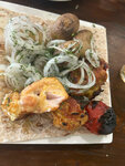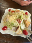 Еда из 3 блюд съели только 1 не вкусно Цезарь со старой курицей. Помидоры резиновые. Прождал 30 м ин блюдо сказали его нет в результате 70 мин ждал замену) Если выпить посидеть место не плохое. Если покушать то точно не сюда!