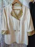 Плотная натуральная шелковая парча, сочетание нитей красного и золотого цветов с цветочным орнаментом. Парча пластичная, хорошо драпируется в мягкие складки, приятная на ощупь, шелковистая, непрозрачная. Рекомендуем для пошива костюма, жакета, пла...