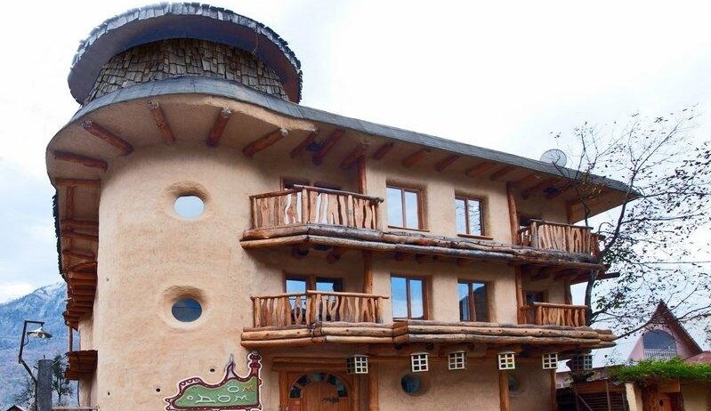 Хороший отель, необычный интерьер, все, что возможно, сделано из натуральных материалов. Уютный номер с небольшим балконом, виды на горы. В отеле есть ресторан "Яблоки печем", готовят очень вкусно. Всё, что удалось попробовать , понравилось. Рекомендую и отель и ресторан.