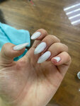 Разочарована, почему не предупреждают, что работает стажёр? Очень плохо. Непрофессинально Маникюр сделан некачественно и болезненно, длину запилили под основание, при просушке растекся лак, спросила будут ли исправлять форму, сказала, что запилит, исправит, форма ногтей на 2 пальцах была похожа на яйца. Запилила, покрыла финишем, предложила намазать кремом. Какой крем? Если на одной руке ногти в форме яиц, а на другой нормальные. Я повторно попросила исправить, что мне необходима симметрия, "мастер" сказала, что у меня ногти разной формы. Исправила, запилила, вся кутикула красная, покрыла финишем, фото прилагаю. Цена не соответствует качеству. Такое качество и даром не надо. Из плюсов: "мастер" была вежлива, администратор предложила вкусный кофе