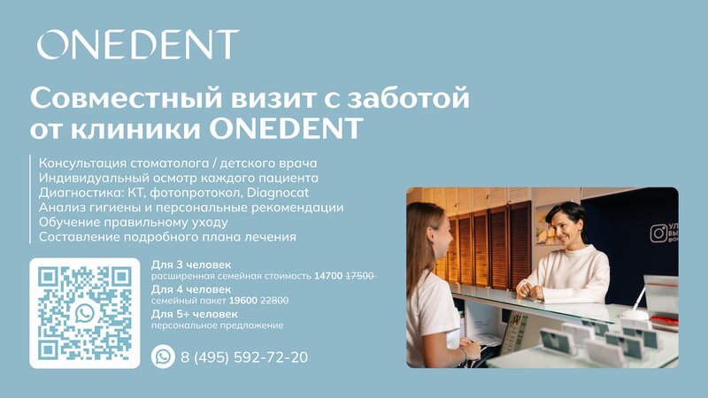 Консультация детского стоматолога в OneDent (Москва) — осмотр, ответы на вопросы родителей и понятный план лечения/профилактики. Адреса: ул. Свободы, 61 к1 и ул. Героев Панфиловцев, 13 к3.