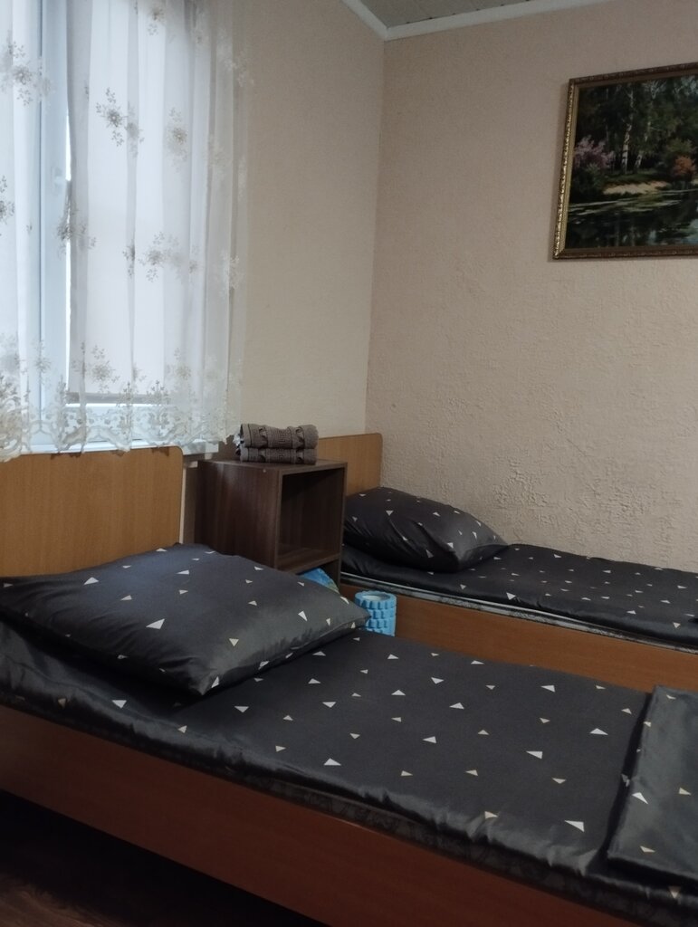 Был приятно удивлён, ожидал худшего, снимали на один день на двоих пяти местный номер, просторно, пять кроватей, две сдвинуты, кухня, электро плитка, электро чайник, мойка, стол на пятерых, посуда, чисто, из минусов дешёвые синтепоновые подушки, поющий унитаз, в шаговой доступности пятерочка и пивной. Сплит есть, справляется, матрас нормальный.