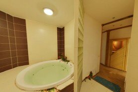 Сауна - не приятная. Все старое поношенное, обивка на диванах потрескалась до откровенных дыр. В джакузи ледяная вода странного синего цвета, но даже через нее видно страшное дно этой посудины. Про комнаты для релакса – писать вообще не буду – там очень и очень страшнооо. А еще очень хочется сказать, что в этой сауне тепло только в парилке, во всех остальных помещениях очень даже прохладно! Так же при входе в качестве банных принадлежностей выдают страшные простынки – разных размеров. В общем, просто ужас!!!
