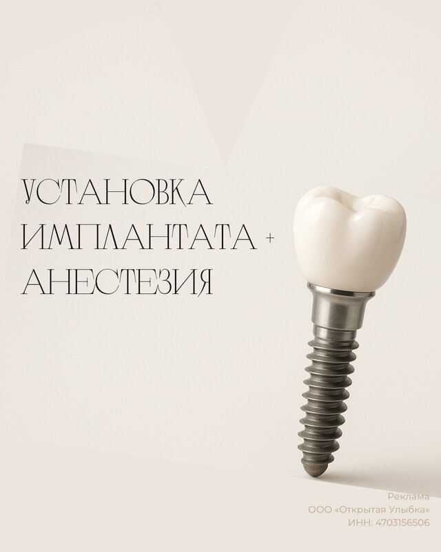 Установка имплантата Dentium/Osstem + анестезия