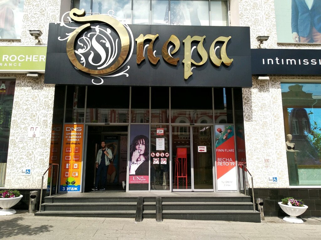 Здравствуйте. Лично мне очень нравится этот торговый центр, во-первых он находится в в старом монументальном здании постройки времён конца XIX начала XX столетия, меня впечатляет мощь этого здания, очень широкие стены, высота потолков, видимо там были витражные,панорамные окна но сейчас конечно все они закрыты шторами и рекламными баннерами,а жаль это должно быть очень стильно и аутентично смотреться. Что же касается функционала ТЦ «Опера» , то для меня здесь подобрано очень удобно продовольственный магазин « ПЯТЁРОЧКА», правда не получиться произвести оплату смартфоном через QR - код так как расположен на цокольном этаже и в подвале абсолютно нет никакой связи, что во многом зависит от специфики самого здания,как я уже писала монолитные толстые стены . В нём есть очень ароматный, пахнущий свежи - молотым , зерновым , сваренным кофе отдел « от Палыч », советую всем сладкоежкам города Самары и гостям,можно забрать заказ с собой, можно присесть и наслаждаясь прохладой выпить кофе в самом центре. Естественно что присутствует много отделов с брендовыми названиями одежды, нижнего белья, головных уборов, сумок, ювелирных украшений, очков, офисов подключения, оплаты и продажи сотовой связи, много хороших отделов косметики как Make up , так и по уходу и лечебной . Есть туалет, зоны примерки ,экскалатор, в помещении чисто, прохладно, есть стильная и очень милая, оригинально оформленная зона для фото и селфи ,на этажах стоят лавочки для отдыха. Самое главное чем нравится мне то что расположен в историческом центре города Самары, в середине старинной, знаменитой, носящей функции Арбата пешеходной улицы Ленинградская, со спуском к самой красивой набережной в РОССИИ и в соседнем доме со мной 👍😊
