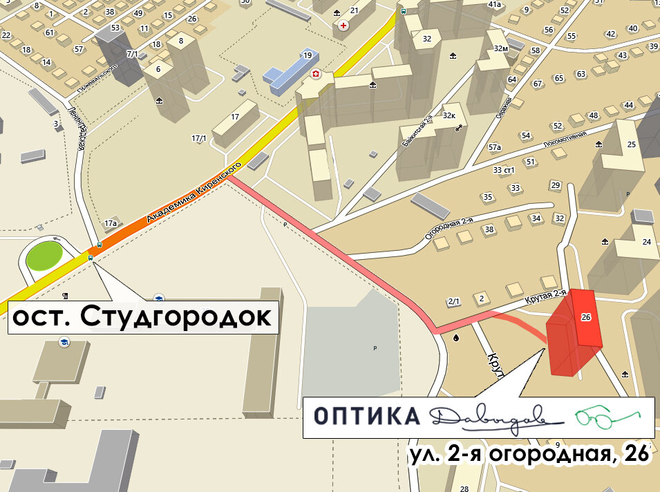 СтудгородокRadischeva StreetЖелезнодорожная больница (4099 км)Железнодорожная больницаУлица Корнеева
