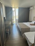 Супер гостиница, современная, просторная,чистая,рядом с морем...пляж широкий, есть лежаки для проживающих. При отеле ресторан со шведским столом,есть возможность докупить полный пансион за 2500, выбор хороший и все вкусное. Ещё плюс,что это гостиница пансионат, можно пройти различные процедуры. Так же на целый день расписана анимационная программа для детей и взрослых. Остались с мужем очень довольны, обязательно приедем ещё.