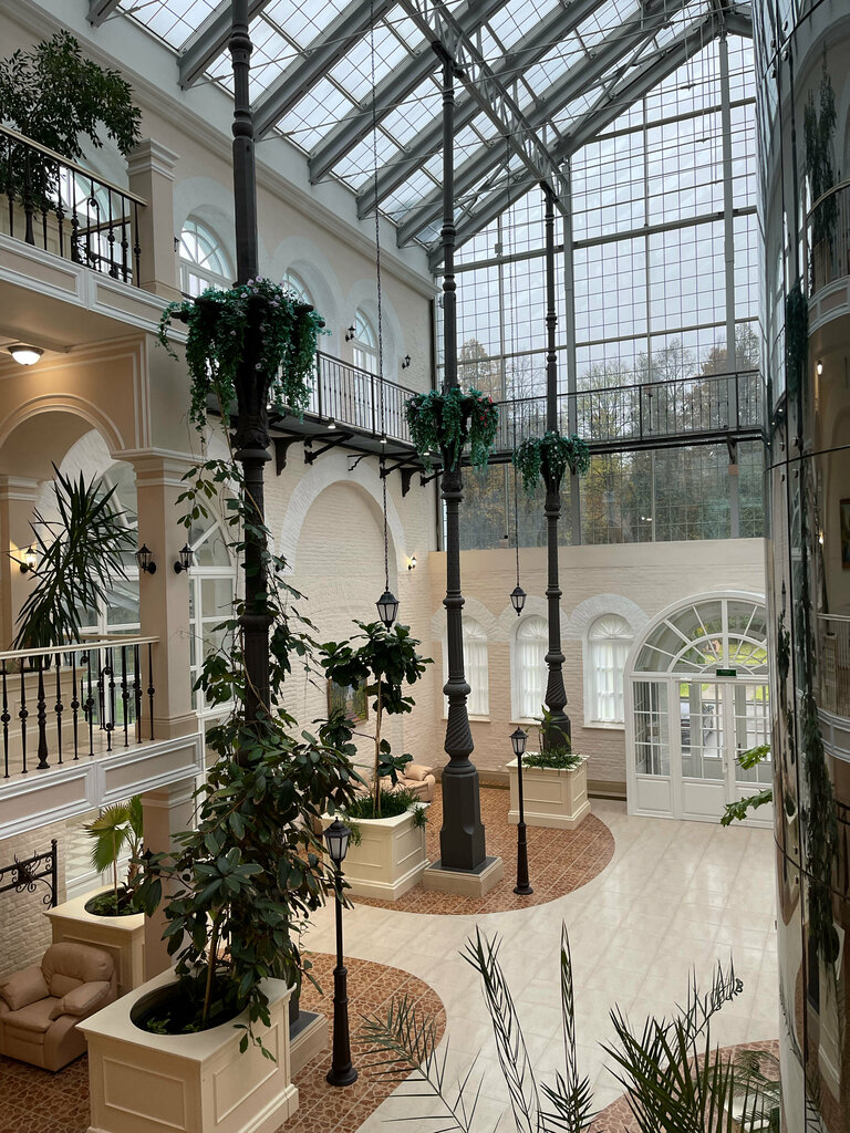 Внутри не был, но снаружи смотрится красиво и необычно. Видимо, историческое здание с некоторыми стеклянными пристройками. Для поселка с населением в тысячу человек иметь целую оранжерею — достижение. Создает некоторый архитектурный ансамбль вместе с усадьбой неподалёку. Если развивать это место и рекламировать — станет местом привлечения туристов.