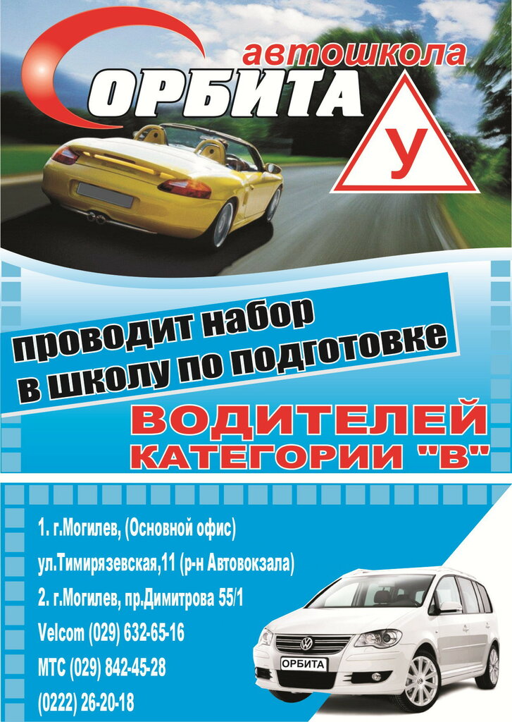 Советую автошколу "Орбита". Хороший и опытный преподавательский состав)) После обучения в ГАИ сдала с первого раза, хотя были трудности в школе и с теорией и с вождением. Огромная благодарность Григорию Григорьевичу за полученные знания и пояснения))) И огромная благодарность инструктору по вождению Акулову Ивану Ивановичу за его терпение))) Сразу скажу - не всем сразу даётся вождение)) Но благодаря терпению и профессионализму инструктора - невозможное становиться возможным)))