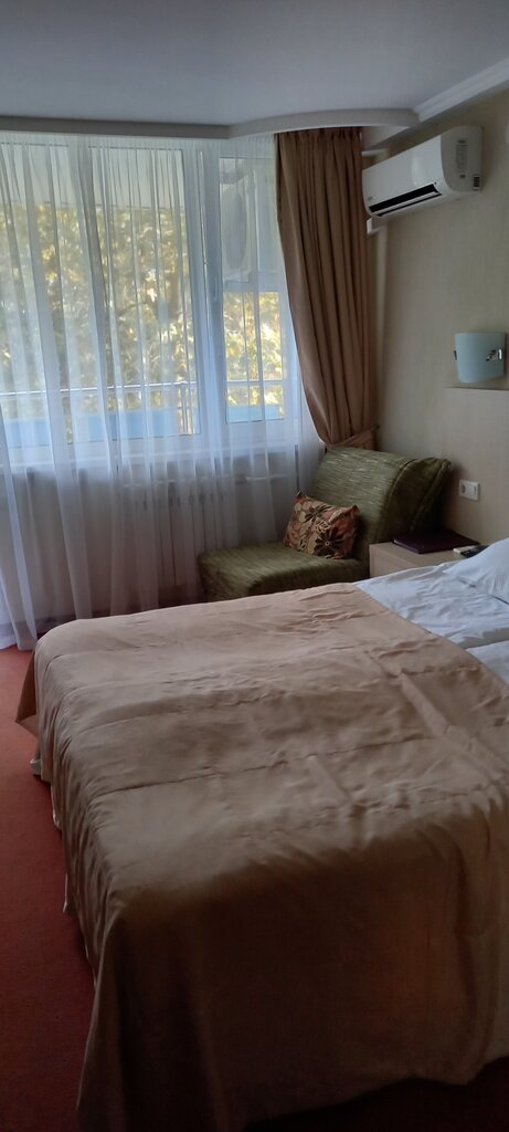 Заселение на ресепшене занимает около часа по времени, при том что передо мной было два человека ... На рецепции две капуши, которые еле шевелятся,в горячий сезон. После заселения оказалось, что в 13.40 номер ещё не готов, не убран от предыдущих посетителей( фото во вложении), на вопрос когда будет готов, персонал сказал что во всем корпусе . Номер в ужасном состоянии, не соответствует фото на официальном сайте. В номере нет тапочек и халатов, хотя в описании номера должны быть. На просьбу принести, ответили в претензии управляющему. Из плюсов хорошая большая территория, бесплатная парковка, лежаки на пляже. Цена абсолютно не соответствует уровню сервиса. Это не 4 звёзды. Менеджмент остался в СССР. Больше сюда не приехал бы.