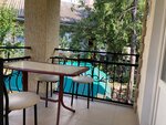 Прекрасное место для отдыха. На территории есть стоянка для автомобилей, большая беседка с мангалом и столами. Номер чистый уютный. В номере есть всё необходимое, кондиционер, ТВ, фен, холодильник, микроволновая печь. До пляжа идти 3-5 минут прогулочным шагом по теннистой асфальтированной аллее.