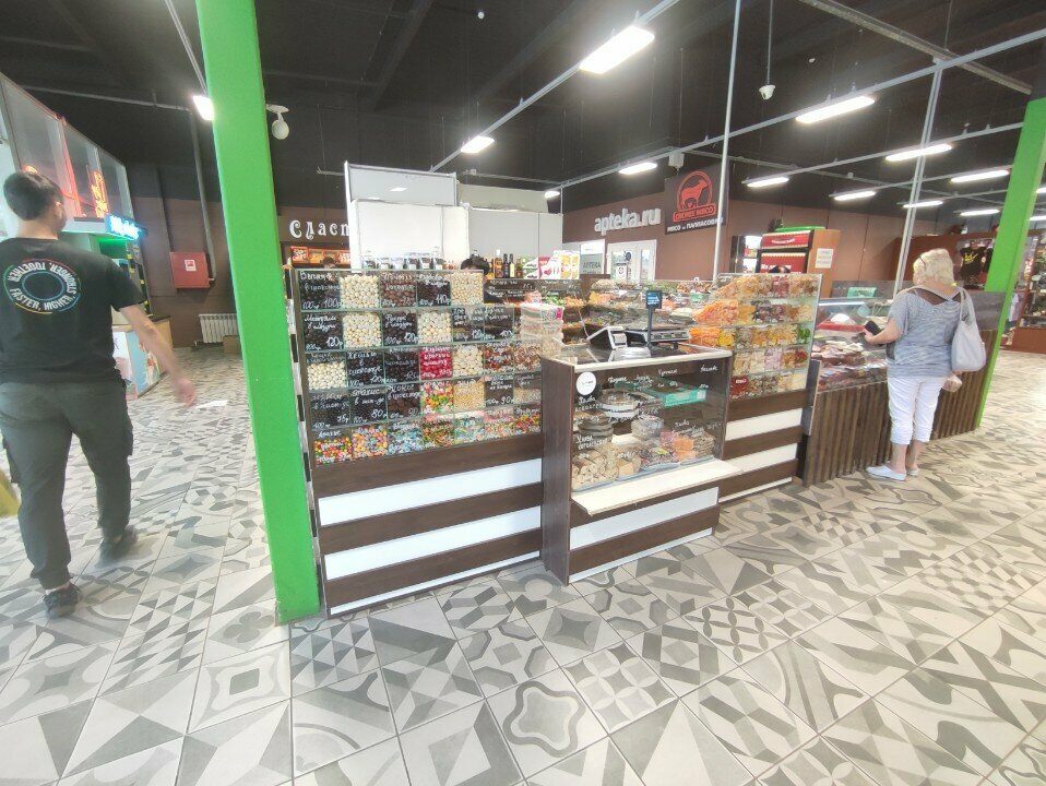 Товар вкусный.Цены на один и тот же товар меняются в зависимости от продавца,которые часто в очень не трезвом состоянии.Используют грязные салфетки и воду.Пользуются средством для чистки стекол в близости продуктов.