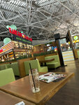Очень уютное заведение!!! Меню разнообразное, есть барная карта. Кушали борщ, том ям-большие порции и очень вкусно, понравились бургеры-готовят из под ножа . Цены оч приемлимые для аэропорта, мы часто летаем и были приятно удивлены! Персонал приветливый. Есть зарядки