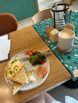 Заехал позавтракать и посмотреть новый район. Выбрал по рейтингу и меню. Критерий - альтернативное молоко и вегетарианские блюда). Очень красиво, быстро, уютно. Я был с собакой и тут сюрприз, в кафе вас ждут вместе. Высокие потолки, дизайнерский ремонт, уютное светлое помещение, красивая подача блюд. Очень приятный персонал. Качество и вкус блюд на высоте. Рекомендую!