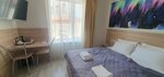 Отдыхали в августе 2025 года в номере повышенной комфортности. Номер с отдельным входом, без ступенек, что очень удобно для пожилых людей. В номере есть холодильник, чайник. Большой совмещённый санузел с душевой кабиной и ванной. Всё чисто. Большой шкаф для одежды с вешалками. Нет тапочек, но их можно купить на ресепшн за 150р. Шампунь для волос, гель для душа, зубная щётка с пастой, мыло есть в номере. Мощный фен. Отель находится в центре города. В пешей доступности торговые центры, центральный рынок, столовые, кафе. Нам понравилось!