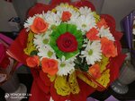 Прошлый век. Один целлофан в букете. Таких старых букетов я не видел уже давно. Накручивают даже на один цветок куча всяких ненужных вещей, какие-то сетки, в общем совдепия одна. К тому же цены дорогие, в соседних цветочных цветы получше, поинтереснее.