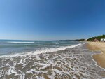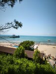 Чистая территория, пляж - песок, мелкий заход в море . Проход к пляжу через парковую зону и потом вниз по лестнице . Есть раздевалки и открытый душ . Так же на территории есть одно кафе для перекуса и с холодными напитками . Есть минус в парковке. Оставляли машину на обочине дороги . В другой раз на другой стороне улицы около магазина « магнит».