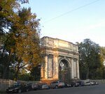 Один из исторических памятников архитектуры Пушкина. Посвящен успешной борьбе фаворита Екатерины || с эпидемией чумы в Москве. Через ворота есть действующий вход в Екатерининский парк