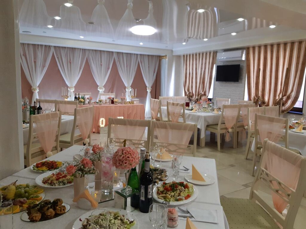 Хороший ресторан при трëхзвëздном отеле. Отмечали здесь юбилей. Прекрасный шашлык нам приготовили, рулетики из баклажан просто шикарные. В целом блюда 10 из 10. Аренды за зал нет, разрешили со своим алкоголем. Обслуживание внятное. Повар опытный. В самом зале никого кроме наших гостей не было. Здесь оказывается так принято. И это классно, не приходится стесняться посторонних. Ну вы знаете как это бывает. Мне лично не важно, но есть люди которым не нравится, что им в рот заглядывают чужие люди. Рекомендую всем.