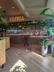 Моё знакомство с сетью Osteria Mario должно было состояться гораздо раньше, причём в формате доставки. Тогда я планировал заказать угощение дочери и ее подруге, пришедшей в гости. Но в тот раз знакомство не состоялось: приняв заказ и продержав его около часа, заведение в итоге его отклонило, сославшись на высокую загрузку кухни. Так я открыл для себя новое место со вкусной пиццей недалеко от себя и получил первый негативный опыт от сети OM. И вот, спустя время, появляется новая возможность для знакомства, на этот раз очного. Деловой завтрак (правда в субботу), место встречи - ресторан на Соколе. Отлично, чем не повод наконец-таки посмотреть что это зверь... Надо признать, что для деловой встречи место оказалось очень даже подходящее: в 11-30 выходнного утра в зале, помимо моего, занят всего один стол. От комфортного общения отвлекает разве что мат, периодически долетающий до зала из открытой кухни (ну а чего, семейное кафе, домашняя итальянская кухня, ребята и чувствуют себя как дома). Может быть такая плотность посадки зала связана с тем, что ещё работает веранда и часть гостей предпочла расположиться там, не смотрел. В любом случае наш выбор - зал. Я пришёл пораньше, поэтому у меня была возможность спокойно осмотреться. Зал светлый и просторный, столы на приличном расстоянии друг от друга (вот он, плюс заведения, расположенного на удалении от центра). В декоре много зелёных насаждений (не разглядел, правда, но предположу что искусственных). Нормально, без изысков, в меру уютно. Можно переходить к изучению меню. Но в части завтраков долго изучать не пришлось. Дюжина утренних позиций, поэтому выбор сделать не так сложно. Каши, скремблы, сырники, блины - всё базовое, понятное. Что-то по душе точно найдётся. На несколько посещений такого разнообразия точно хватит. Без выдающихся эксклюзивных позиций, но их никто и не обещал. Важно отметить ценовую политику. При заказе блюда из раздела завтрак, напиток (чай, кофе) вам предложат бесплатно. Это приятно влияет на счёт в лучшую сторону. А если добавить к этому, что после завтрака вам выдадут карточку, по которой каждый 5-й завтрак будет бесплатным - так и вообще довольно бюджетно. Мой выбор пал на скрембл с креветками и шпинатом и тонкие блинчики с ягодным соусом. Всё вполне вкусно, без нареканий, поэтому можно смело говорить про баланс цены и качества. Сервис довольно оперативный: заказ отдали достаточно быстро, посуду также быстро унесли (но нужно иметь ввиду минимальную посадку, не знаю как обстоят дела при более плотной посадке). Итак, первая встреча состоялась. И впечатления от неё неплохие. Недочёты есть, но не много и они поправимые. Я точно хочу повторно зайти на основное меню, так как завтрак, очевидно, это не основной профиль и по нему полноценно оценить кухню сети нельзя. Но для начала - вполне пристойно. Смело заходите.