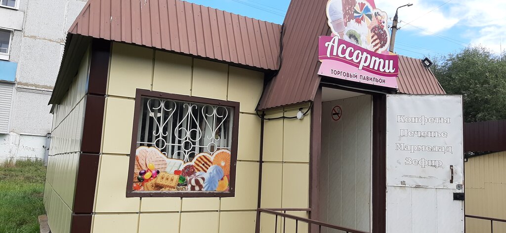 Сейчас, как мы видим на фото, магазинчик называется "Ассорти". Здесь всегда можно взять качественные колбасы, сыры и другие продукты по приемлимым ценам, в отличии от супермаркетов. Всегда захожу, чтоб взять что-то вкусненькое детям. Всем рекомендую.