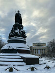 Я турист, на второй день в Петербурге решила исследовать город. Купила Шаверму на Литейном, по многочисленным отзывам она считалась одной из лучших, и пошла искать уютное местечко, чтобы перекусить. Шла шла, столики возле дороги меня не очень устраивали, хотелось все-таки наткнуться на какое-нибудь отдаленное от дороги укромное местечко, вроде парка или скверика. Так я и нашла площадь Островского. Естественно, что первым бросилось в глаза это памятник Екатерине II. Огромный и величественный с отличной детализацией. На самой площади царила спокойная атмосфера, недалеко от памятника стояла девушка с мольбертом, изображающая Александринский театр. Вообщем идеальное спокойное местечко для того, чтобы посидеть и перекусить.