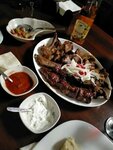 Кафе с"атмосферой" кабака и живой музыкой. Мы не любители такого, поэтому сели во втором зале, рядом со входом в кафе. Повелась на отзывы и взяла Кавказский салат. Не впечатлилась и перебор с сухариками. Муж брал Жаркое лесника (картошка, свинина, грибы в соусе со специями) и не прогадал: очень вкусно и большая порция. Так же брали на двоих 300 грамм бараньих язычков. Это нереально вкусно!!! Белый соус оказался лишним. К ним не требуется, блюдо и так прекрасно))) брали ещё лаваш, тархун и чашку чая. Подача блюд достаточно быстрая. Вышло на 4400 руб. за двоих. Обратите внимание (в меню указано), что за музыку сбор в 150 руб с человека