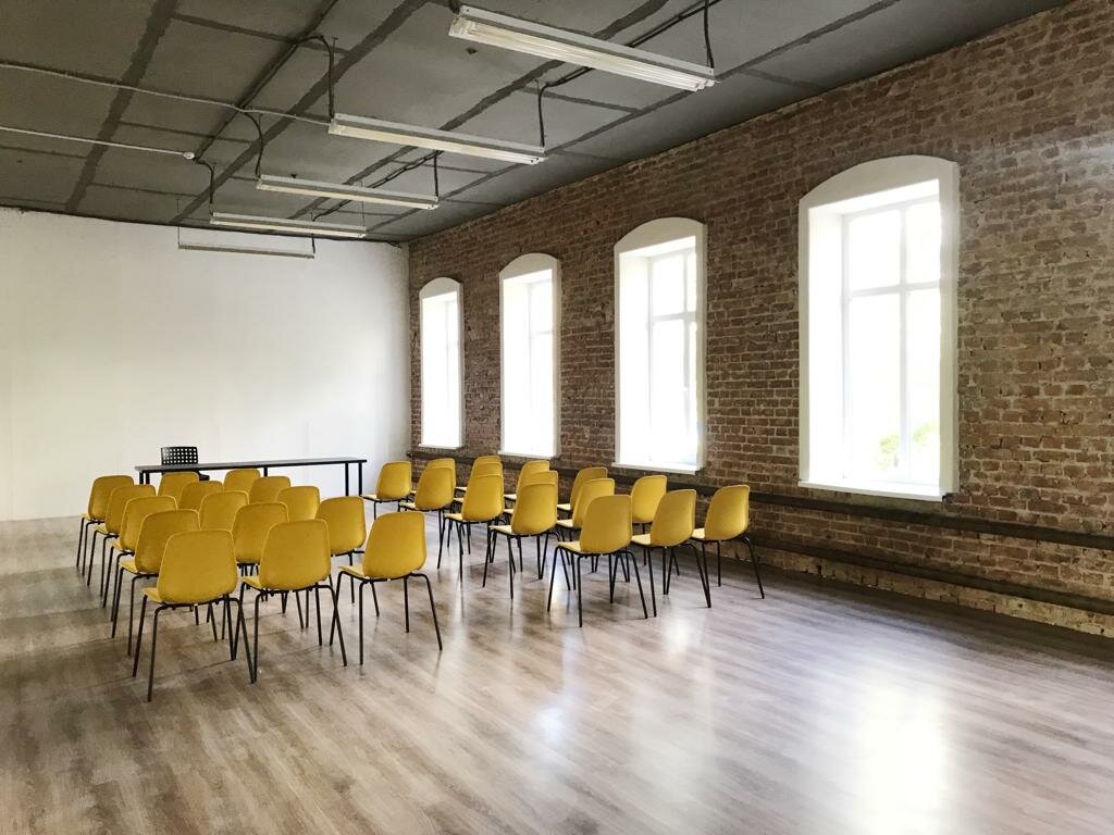 Атмосферное место. Чистые просторные залы для любых мероприятий, можно выбрать подходящий по площади в зависимости от количества участников. Приветливые администраторы. Есть раздевалка, туалеты, кулеры с водой в каждом зале, столы, стулья, по запросу проектор.