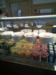 Ну, выбор напитков есть, никаких добавок по типу сиропов нет, объем на все один. Цены не дешевые. Персонал неторопливый, но вежливый, приветливый.