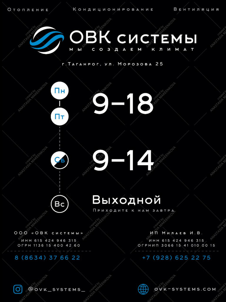 Искал я как-то компанию, которая установит мне бризер в одной из комнат квартиры. Место установки не совсем стандартное. В интернете увидел что есть такие ребята и название у них - ОВК системы. Приехали, осмотрели место. Рассказали всю интересующую меня информацию о бризерах, способах монтажа. Заказал у них бризер, доставили за неделю, сказали дату и время установки. Привезли устройство, сами все подготовили, отодвинули диван. Отличное качество монтажа устройства, все аккуратно. Мусора и грязи даже не оставили после себя. Да и цена на работы вполне приятная. В общем как бы не хотелось, а недочетов у них найти не могу. Для решения "климатических" вопросов очень рекомендую компанию ОВК системы как профессионалов действительно знающих свое дело!