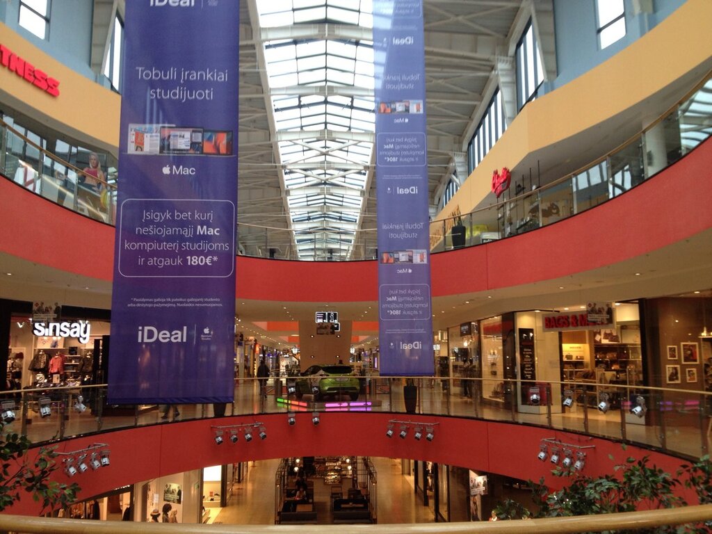 Nice big shopping mall in Vilnius. All chain stores are listed. There is also Peek and Cloppeburg on 2 floors. As usual, cinema-sports club-food court. Parking is covered and open. Two disadvantages: it is difficult to get by public transport and on Friday and Saturday evenings it is difficult to leave the covered parking lot.