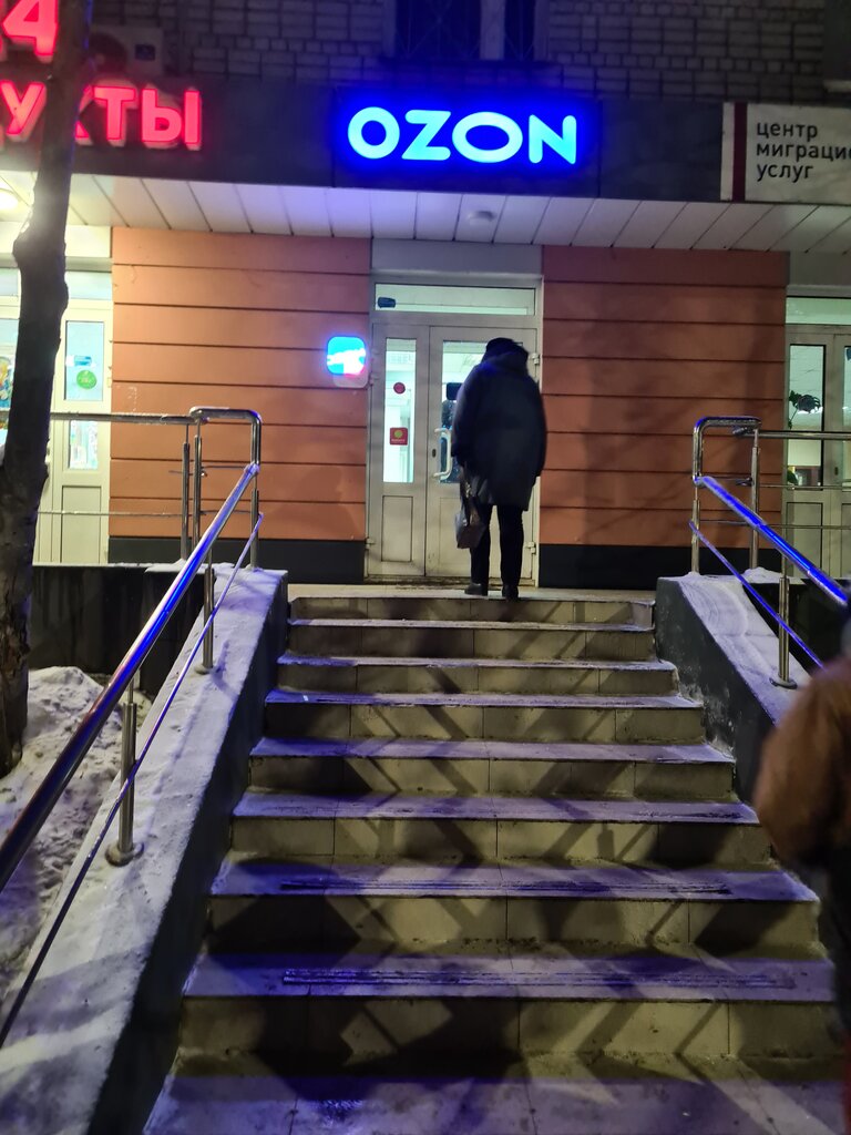 Всем привет!! Редко пользуюсь озоном но иногда приходиться и там заказывать! Пункт выдачи более менее нормальный но есть свои недочеты!! 1. Нет камеры над столом для проверки товара, а только у ресепшена 1*1 метр, что создает пробки. 2. Очень скользкое напольное покрытие. 3. Сотрудник как будто там живет)) 4. Товар стоит на полу, но от клиентов много грязи и воды от снега, что может повредить товар! Если бы знал что есть такие неудобства заказал в постомат!